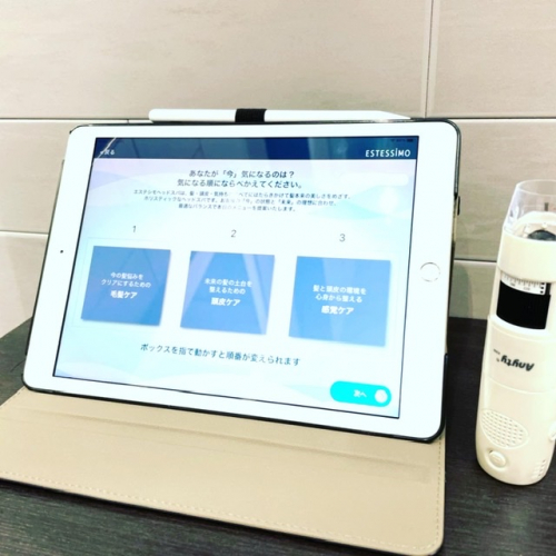 当店ではスコープをつかって頭皮の状態を診断し、皆さんそれぞれの最適なケア剤をセレクトします。
