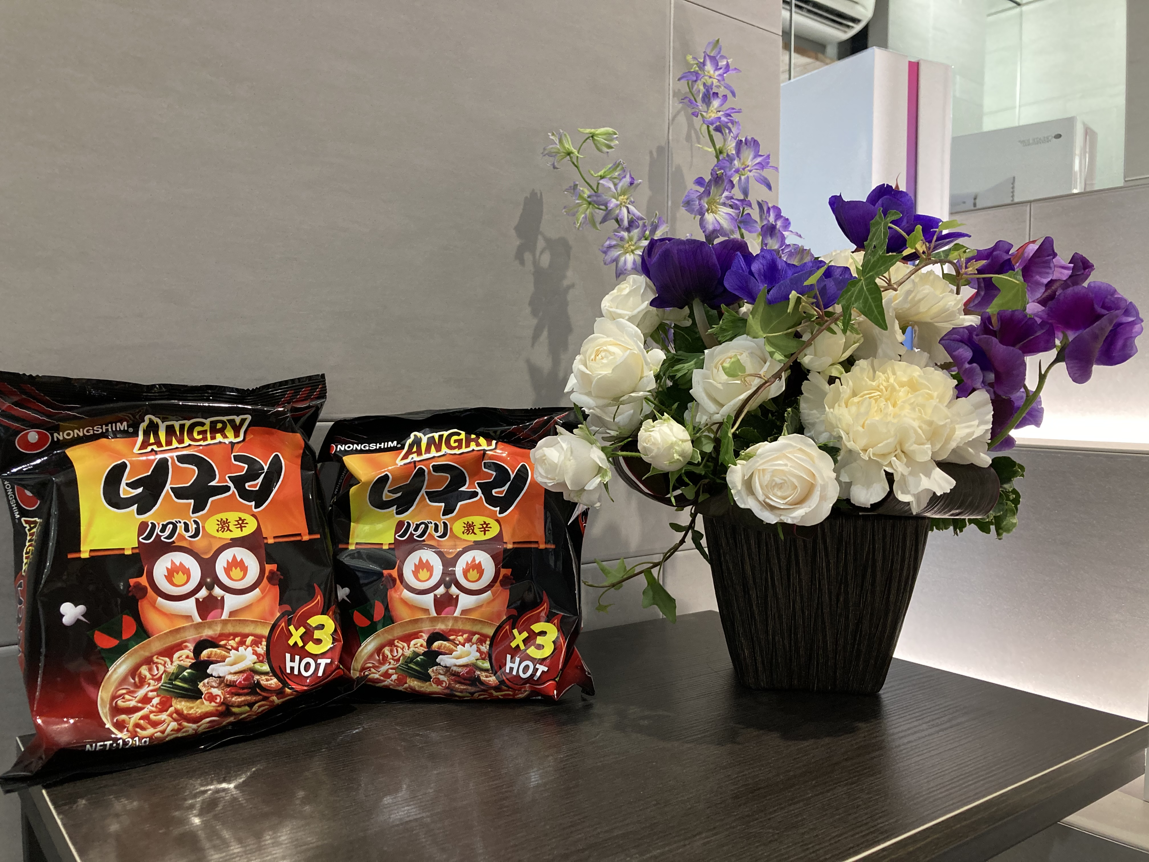 昨日ご来店してくださったお客様からお花とラーメンを頂きました♪